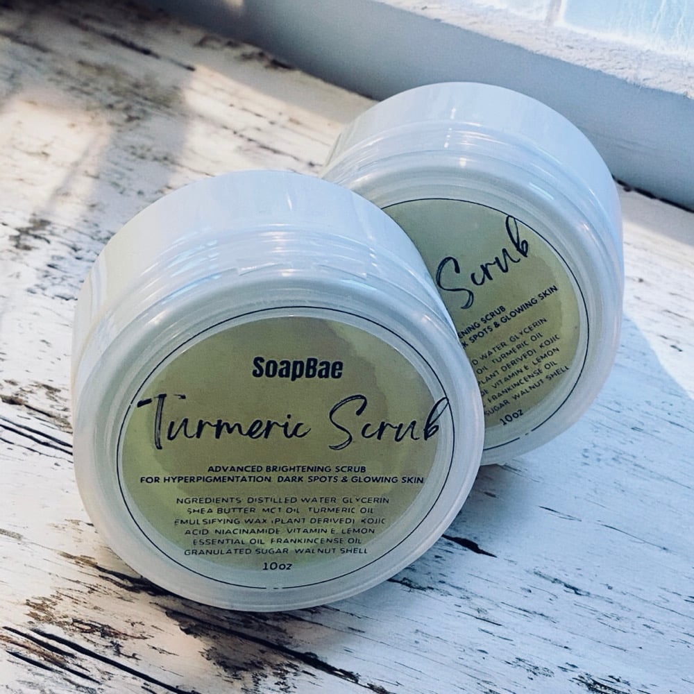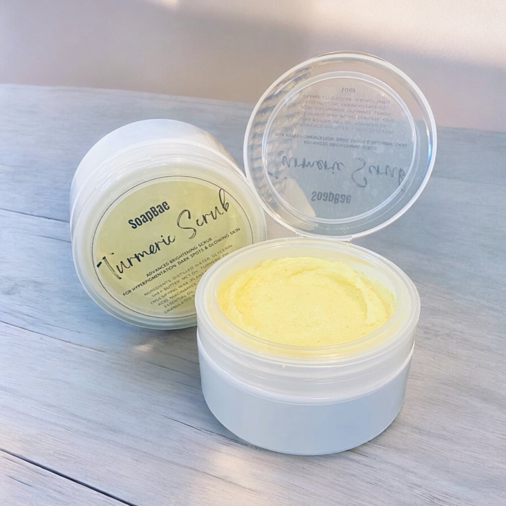 Shea Butter, Turmeric Oil, Caprylic/Capric Triglyceride, Cetearyl Alcohol, Emulsifying Wax (Plant Derived), Distilled Water, Glycerin, Niacinamide, Kojic Acid, Granulated Sugar, Walnut Shell, Lemon Essential Oil.